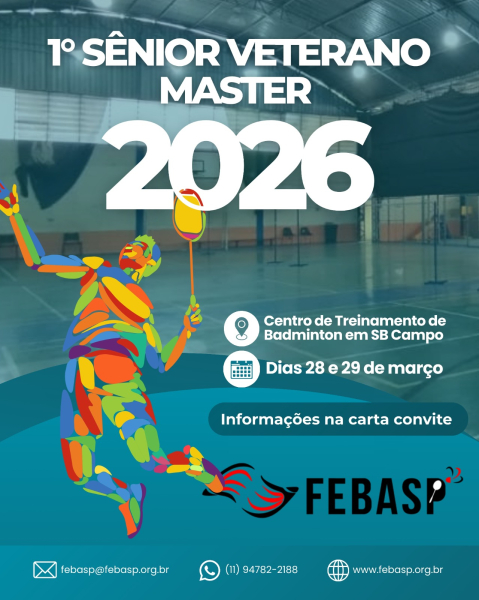 A FEBASP divulga a carta convite da 1ª Etapa Sênior Veterano Master a ser realizada na cidade de São Bernardo do Campo nos dias 28 e 29 de março.
