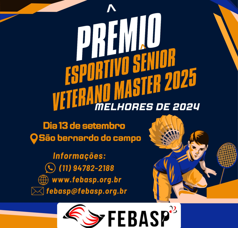 O Prêmio Esportivo Sênior Veterano Master 2025 - Melhores de 2024 será realizado dia 13 de setembro no final do 1º dia de competição da 3ª Etapa Sênior Veterano Master.